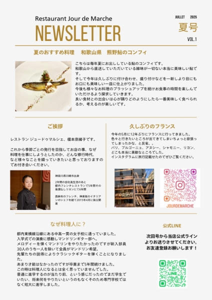 Newsletter No,1 2026-01-25 17:00:59 2025年夏から始めているNewsletter。最近のお料理やシェフ榎本のつぶやきなど、よりお店・人を知っていただければと思います。曙橋のフレンチレストラン ジュードゥマルシェご予約はこちらからhttps://res-reserve.com/ja/restaurants/jourdemarche-tokyo